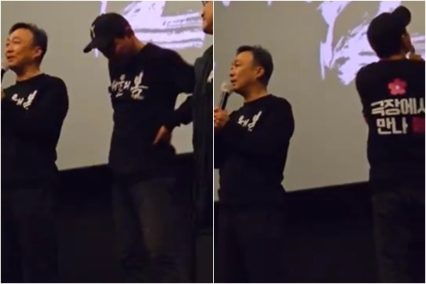 황정민은 사명감은 갖고 이번 작품에 임했다며, 배우들도 감사하다는 말을 하는 과정에서 감정이 북받쳐 제대로 말을 이어가지도 못했습니다. 그대로 황정민은 함께 무대인사에 나선 이성민에게 급하게 마이크를 넘기고, 줄곧 바닥만 바라보다 끝내 눈물을 흘렸습니다. 그리고 관객을 등지고 돌아서 눈물을 훔쳤습니다.